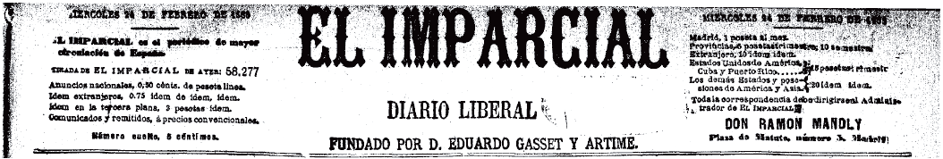 Cabeçalho do jornal "El imparcial", edição de 25 de Fevereiro de 1886