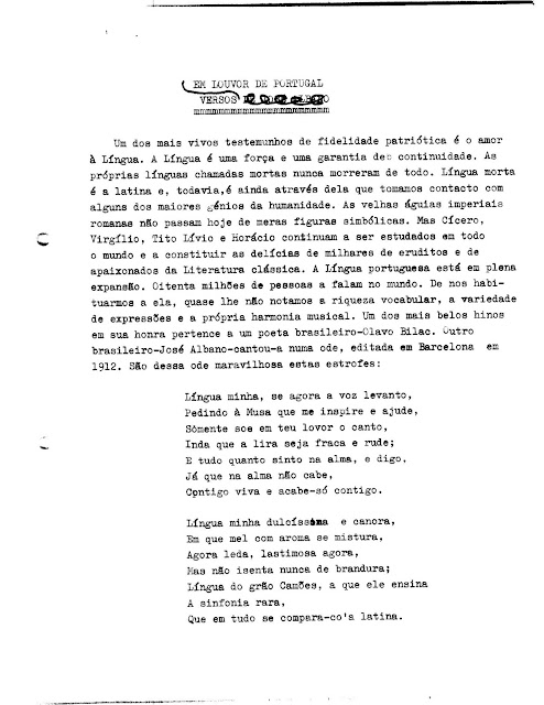 Nunca faltaram, ao longo da nossa História, mulheres da Têmpera e do ímpeto patriótico da que se bateu destemidamente pela liberdade e honra de melgaço. Ainda agora, a explosão de terrorismo que ensanguentou o norte de Angola veio pôr àprova a energia moral das mulheres portuguesas, fiéis à centenária tradição nacional e conscientes da responsabilidade que constantemente lhes cabe nos destinos nos destinos da nossa Terra.